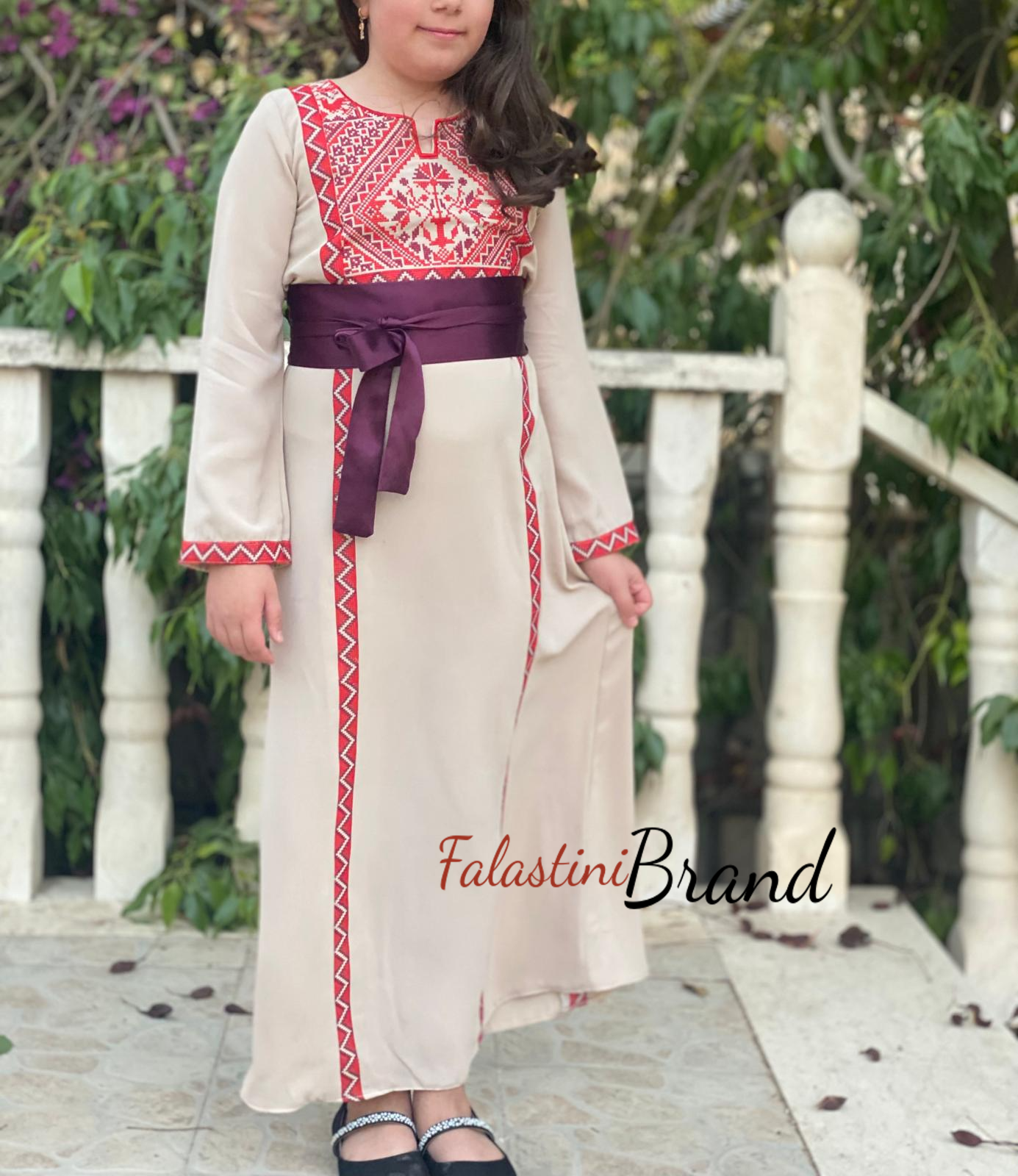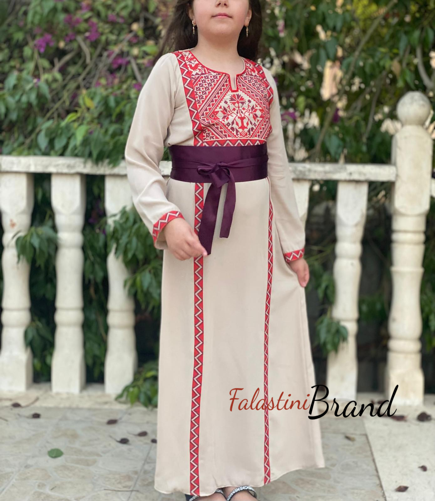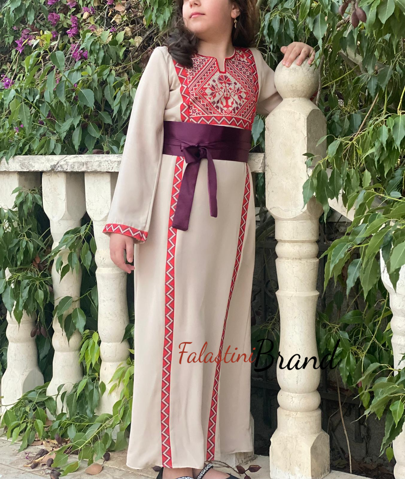 Little Girls Elegant Stylish Beige Thob With Satin Belt
